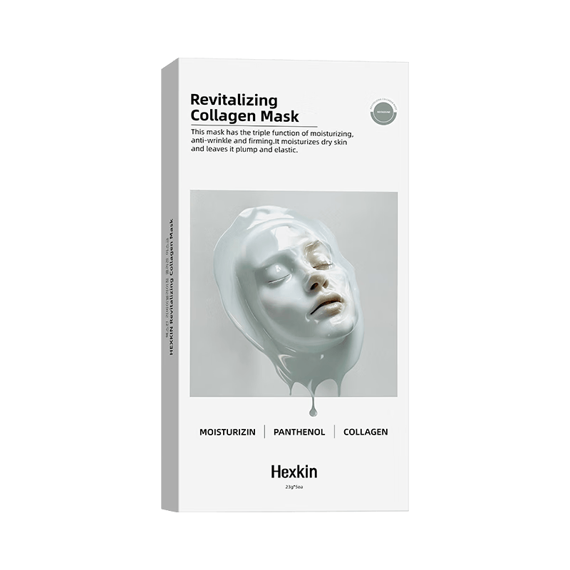 HEXKIN面膜采用小分子水解胶原,深层渗透,帮助肌肤抗皱、紧致和保湿。它的丰富精华能让肌肤在极短的时间内恢复水润感。